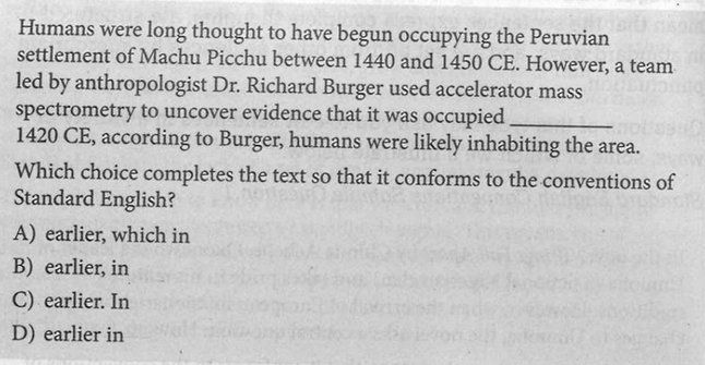 When a passage contains two independent clauses, the wrong answers reflect the most frequent ways that real writers sometimes wrongly combine them: with a comma, but no coordinating conjunction; with a coordinating conjunction, but no comma; or with neither a coordinating conjunction nor a comma.