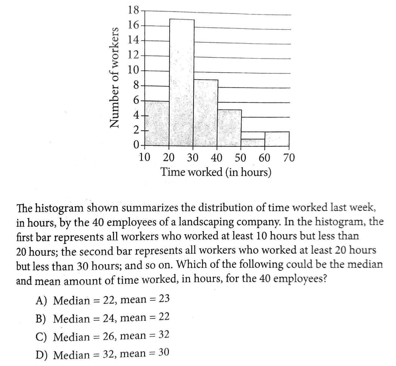 The other two areas, “Problem-Solving and Data Analysis” and “Geometry and Trigonometry,” only take up about 15% each of any given test. The “Geometry and Trigonometry” questions stand out the most from the other questions because they introduce mathematical content absent from other questions. On the other hand, the “Problem-Solving and Data Analysis” questions, though they introduce some new content, have similarities to the Reading/Writing questions with graphs, and to the word problems in the main Math sections, emphasizing that the test is concerned with skill in analyzing real-world problems, arguments, and evidence.